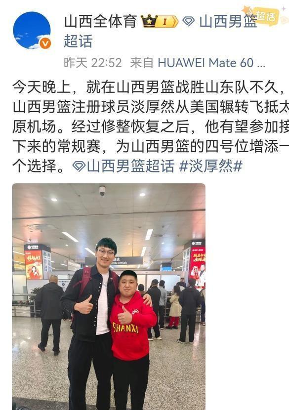 火线加盟山西男篮的淡厚然,正处于聚光灯与放大镜的双重考验之下。